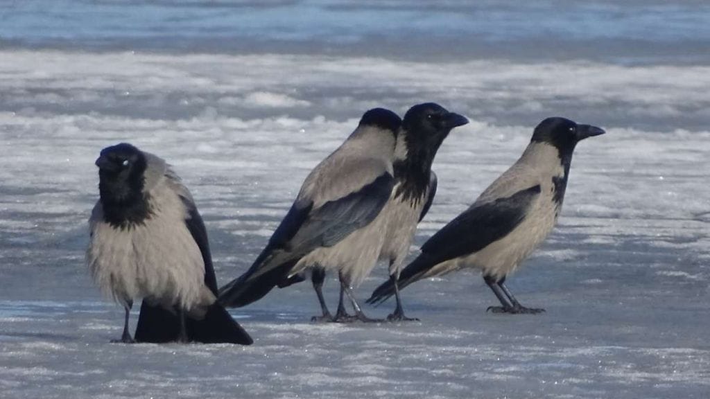 Toisinaan eläinkuvat onnistuvat olemaan jotenkin niin kovin inhimillisiä. Kuten vaikka tämä Lohjanjärvellä napattu otos varisporukasta.