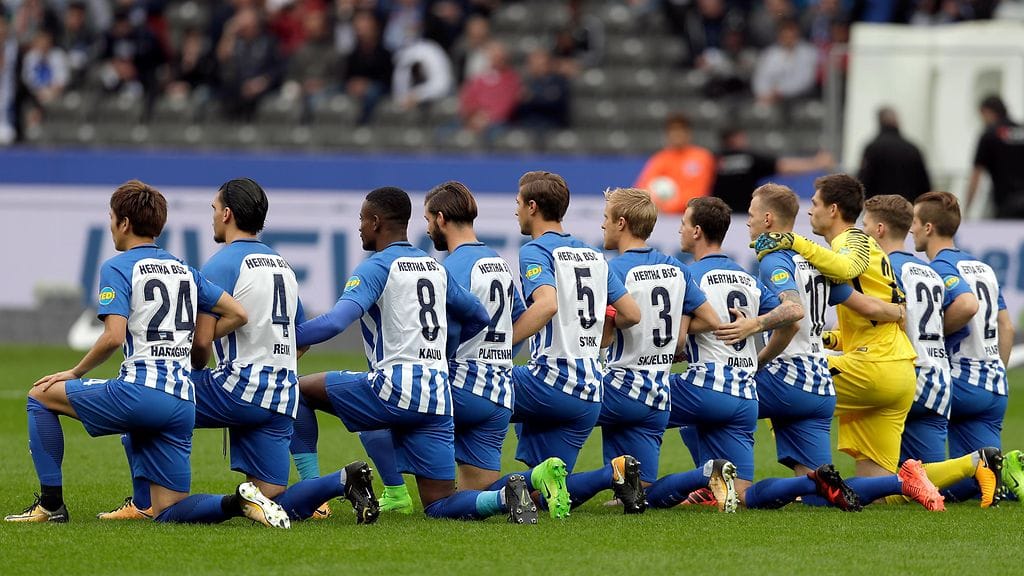 Jalkapallon Saksan pääsarjassa Bundesliigassa pelaava berliiniläisseura Hertha toi Euroopan jalkapallokentille Yhdysvalloista tutun poliittisen protestitavan, kun joukkueen pelaajat polvistuivat ennen lauantaina pelattua liigaottelua Schalkea vastaan.