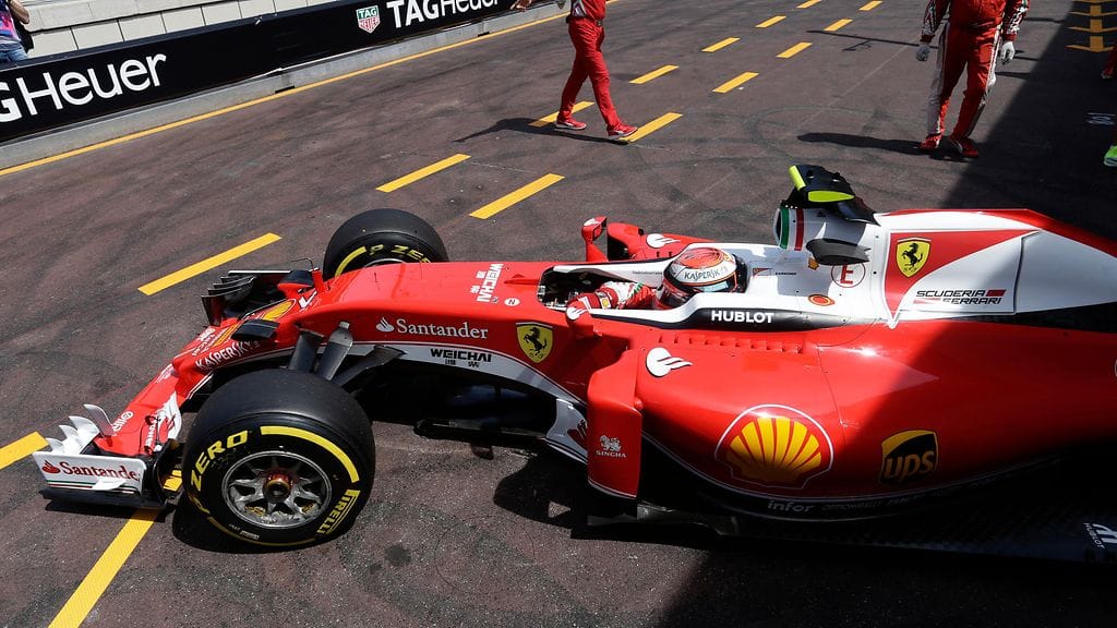 Kimi Räikkönen liikkuu Monacossa F1-viikonlopun aikana Ferrarin skootterilla.