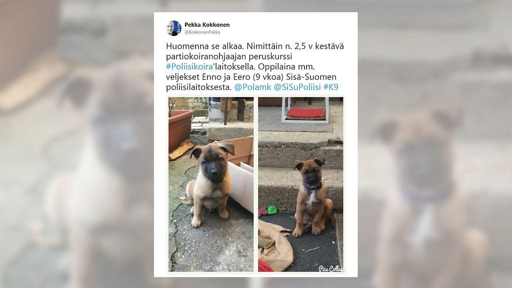 – Oppilaina ovat muun muassa veljekset Enno ja Eero, yhdeksän viikkoa, Sisä-Suomen poliisilaitokselta, twiittaa Poliisikoiralaitosta johtava ylikomisario Pekka Kokkonen.