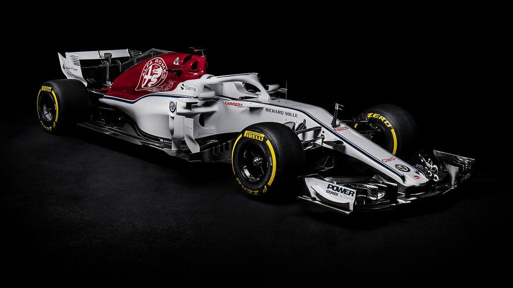 Täksi kaudeksi tehty tekninen ja kaupallinen sopimus autovalmistaja Alfa Romeon kanssa näkyy auton värityksessä. Viime kaudella tallin autot olivat sinivalkoisia. Autossa on tällä kaudella pakollinen Halo-turvakaari.