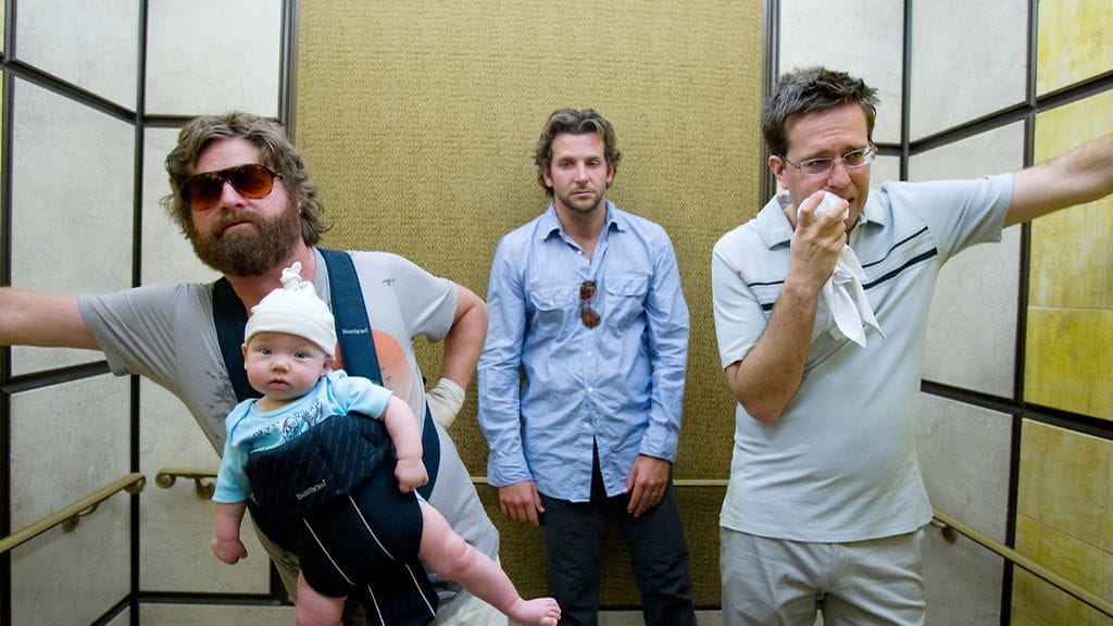 Muistatko vielä Kauhea kankkunen -elokuvan suloisen vauvan, joka kulki suositun elokuvasarjan ykkösosassa Zach Galifianakisin rintarepussa? Kyseessä on Grant Holmquist, joka on mukana myös viisi vuotta vanhempana elokuvasarjan kolmannessa osassa.