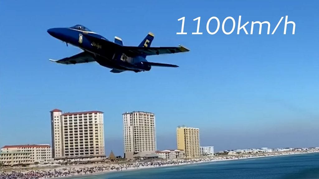 Katsojan videolle kuvaama tilanne todistaa, että lentokone lentää ihmisten ohitse hurjalla vauhdilla. Lentokoneella oli mittarissa tilanteessa jopa 1100 kilometriä tunnissa.