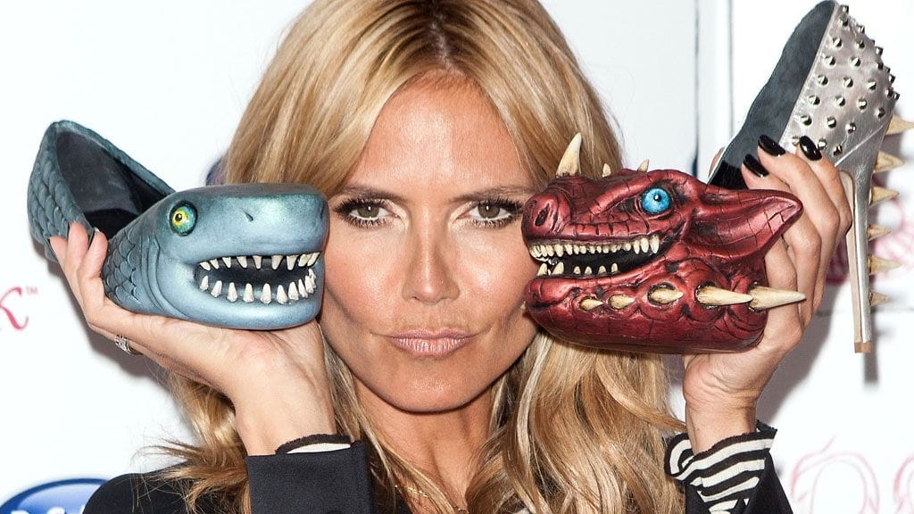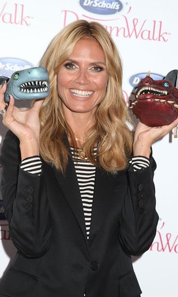 Heidi Klum poseerasi erikoiskenkien kanssa.