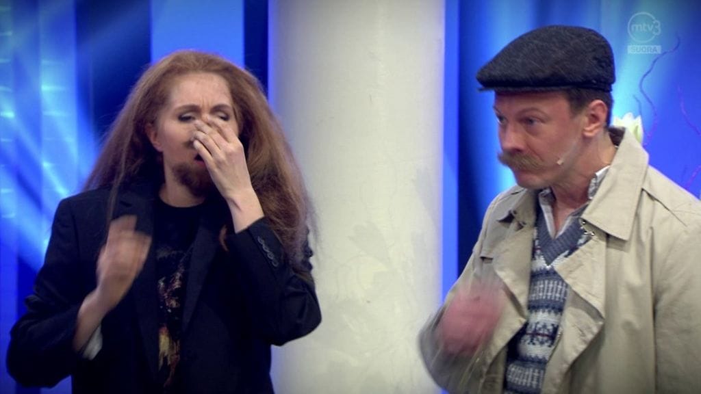 Juontaja Heikki Paasoen paljasti lähetyksen jälkeen Twitter-tilillään, miten kova homma sketsin tekeminen on ollu niin näyttelijöille kuin maskeeraus-tiimillekin.