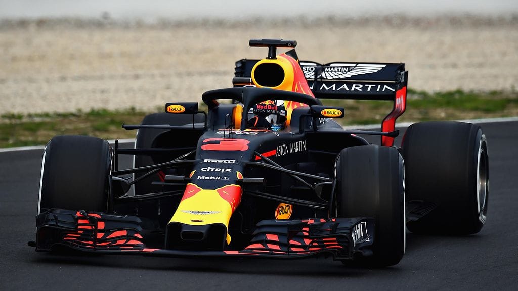 Itävaltalaistalli julkisti autonsa viikko sitten, mutta tuolloin ajokki oli vielä erikoisvärityksessä. Daniel Ricciardo esitteli uuden Red Bullin täydessä loistossaan kaarrettuaan Barcelonan radalle Suomen aikaa klo 10 alkaneissa testeissä (kuvat yllä).