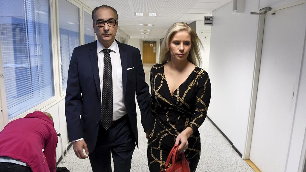 Asianajaja Heikki Lampela pusutteli rakkaansa kanssa ennen oikeudenkäyntiä.