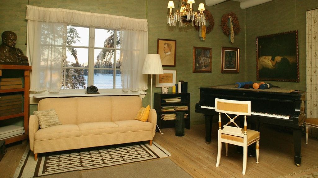 Jean Sibeliuksen kotitalossa Ainolassa toteutuivat hänen toiveensa vihreästä takasta sekä ikkunallisesta näköalasta Tuusulanjärvelle. Lehtikuvan kuvista näkyy, millaisissa tiloissa kansallissäveltäjämme asui.