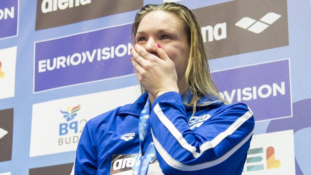Jenna Laukkanen joutui pidättelemään kyyneleitään, kun hänet kruunattiin toisen kerran mestariksi uinnin lyhyen radan EM-kisoissa Israelissa lauantaina.
