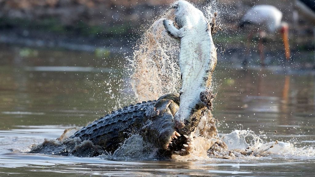 Kuten eläinten mittelöissä yleensä, vääntö jatkuu kuolemaan asti. Tällä kertaa nuoremmasta krokotiilista ei ollut vastusta kokeneemmalle.