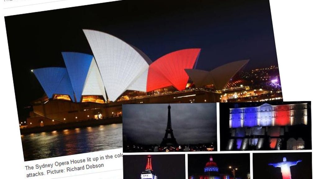 Useat maat ovat osoittaneet solidaarisuuttaan Pariisin viimeöisiä terrori-iskuja kohtaan valaisemalla maamerkkejä Ranskan lipun värein.