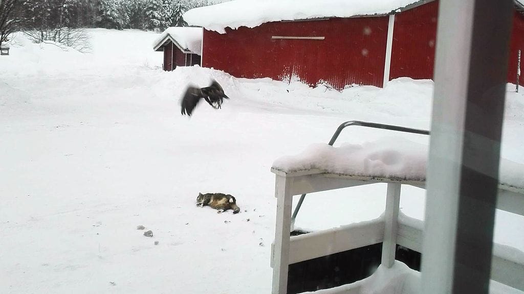 – Ulko-oven ikkunan läpi hän näki kotkan, joka oli syömässä kissaa. Veljentytär nappasi muutaman kuvan, ja ryhtyi hätyyttelemään kotkaa. Kotka lähti pihasta vasta kun hän rupesi koputtelemaan ikkunoihin.