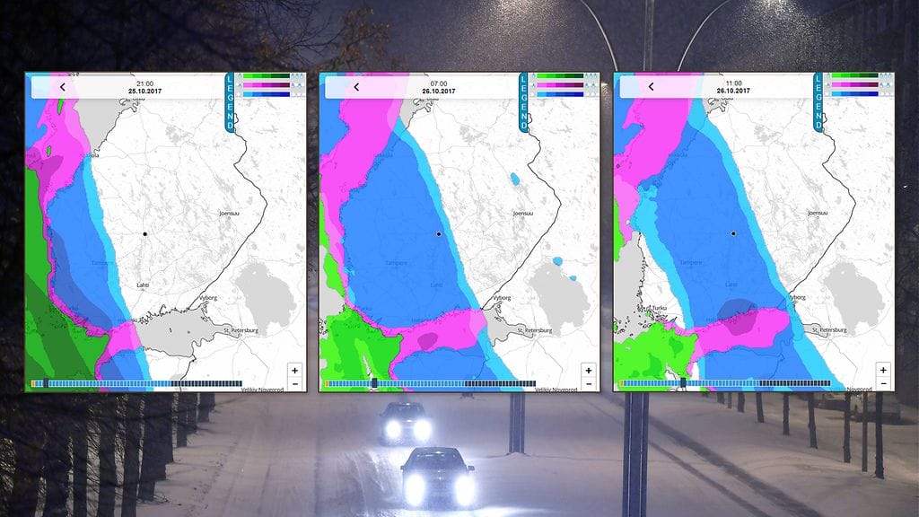 – Aluksi sateet ovat aika vetisiä, mutta ne muuttuvat lumisemmaksi yön aikana.