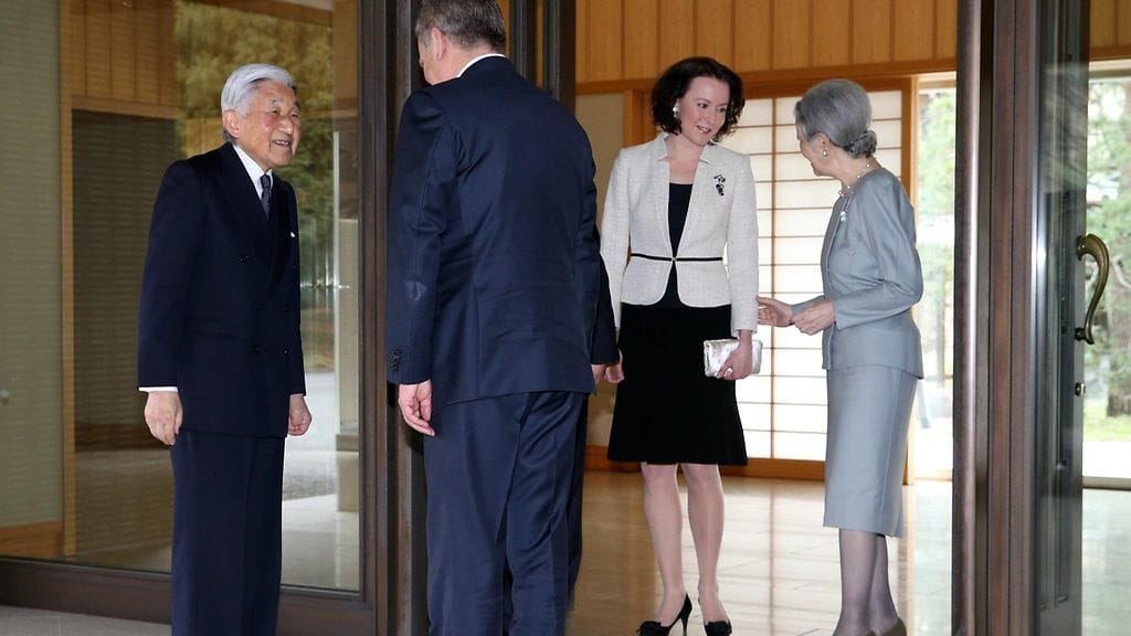 Yllä kuvia Niinistön ja Haukion vierailusta Tokion keisarilliseen palatsiin. Presidenttiparin Japanin-vierailusta lisää kuvia (Flickr).