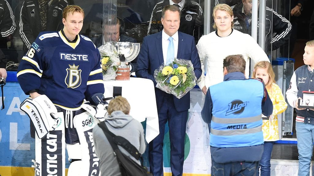 Espoo Blues onnitteli tuoreita kultaleijonia ennen päiväpelien alkamista. Espoolaisseura kukitti omat kasvattinsa Kaapo Kähkösen ja Kasper Björkqvistin, joiden lisäksi myös TPS:n Miro Keskitalo kukitettiin.