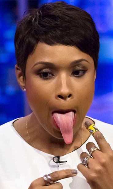 Oscar-palkitulla näyttelijä Jennifer Hudsonilla on kätevä keino todistaa henkilöllisyytensä. Hudsonin tavaramerkki on nimittäin pitkä kieli, josta tähden fanit tunnistavat idolinsa.