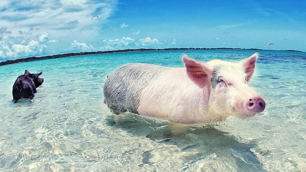 Bahaman Exuman alueella on autio saari, jonka ainoat asukkaat ovat rantaelämästä viehättyneitä possuja.
