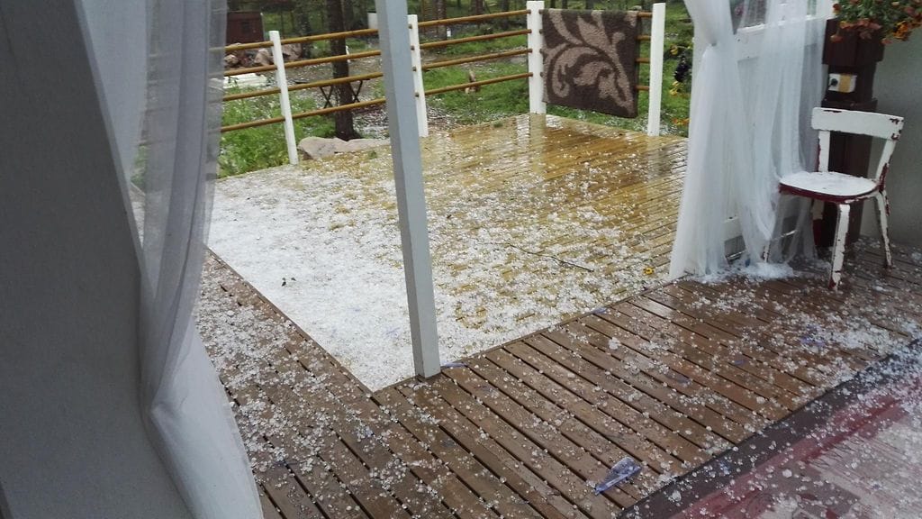 Rovaniemen Norvajärvellä rakeita tuli niin, että ne rikkoivat terassin katteenkin. Myös pihan kukat kärsivät raerummutuksessa.