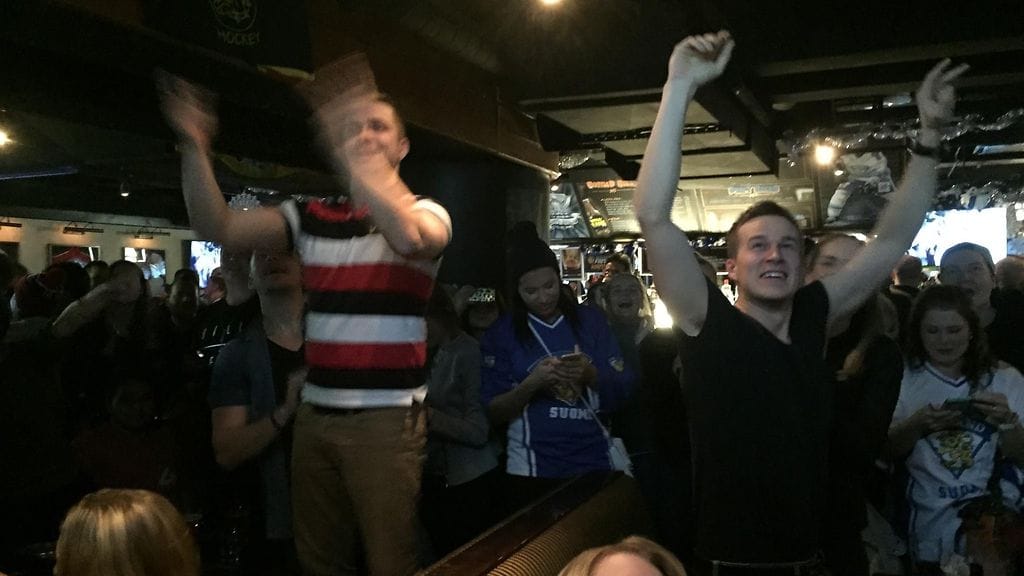MTV Uutisten toimittaja Antti Mälkönen on seurannut jääkiekon nuorten MM-finaalia helsinkiläisessä Sports Academy -ravintolassa. Kun voitto tuli, kisakatsomo repesi.