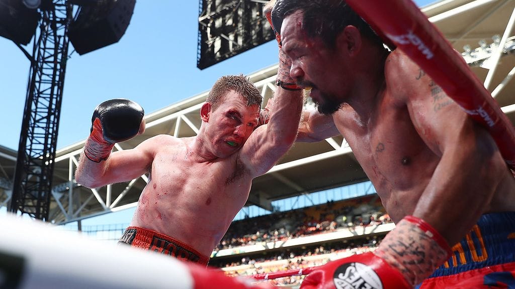 Horn kukisti Pacquiaon WBO-liiton titteliottelussa yksimielisellä tuomaripäätöksellä pistein 117-111, 115-113 ja 115-113. Taisto iskettiin Hornin kotimaassa, Brisbanen Lang Park -stadionilla 50 000 katsojan edessä.