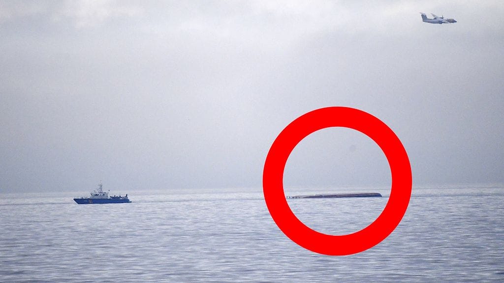 Onnettomuuspaikalta kuvattu kuvamateriaali todistaa, että toinen rahtilaivoista on kääntynyt ylösalaisin. Kuvassa myös näkyy, kuinka pelastushelikopteri operoi paikalla aktiivisesti.