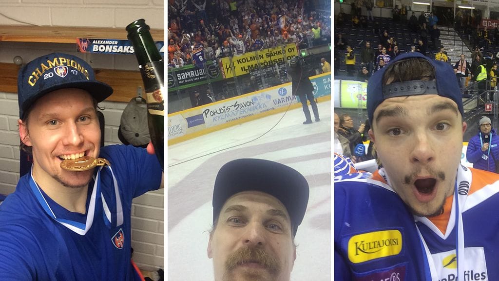 Tapparan tuoreet Suomen mestarit räpsivät juhlahumun keskellä selfieitä MTV Sportin lukijoille.