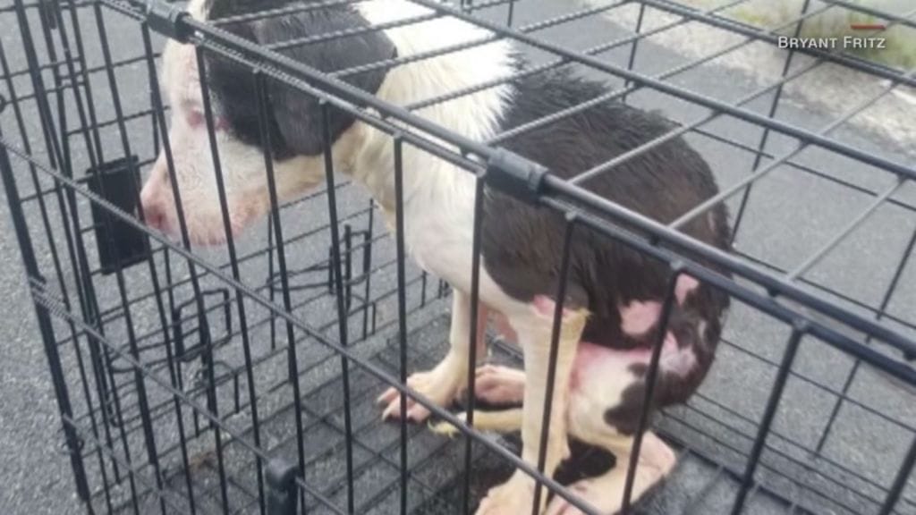 Kesken kalastusreissun Bryant Fritz teki kammottavan löydön, kun hän näki häkitetyn koiranpennun rantavedessä.