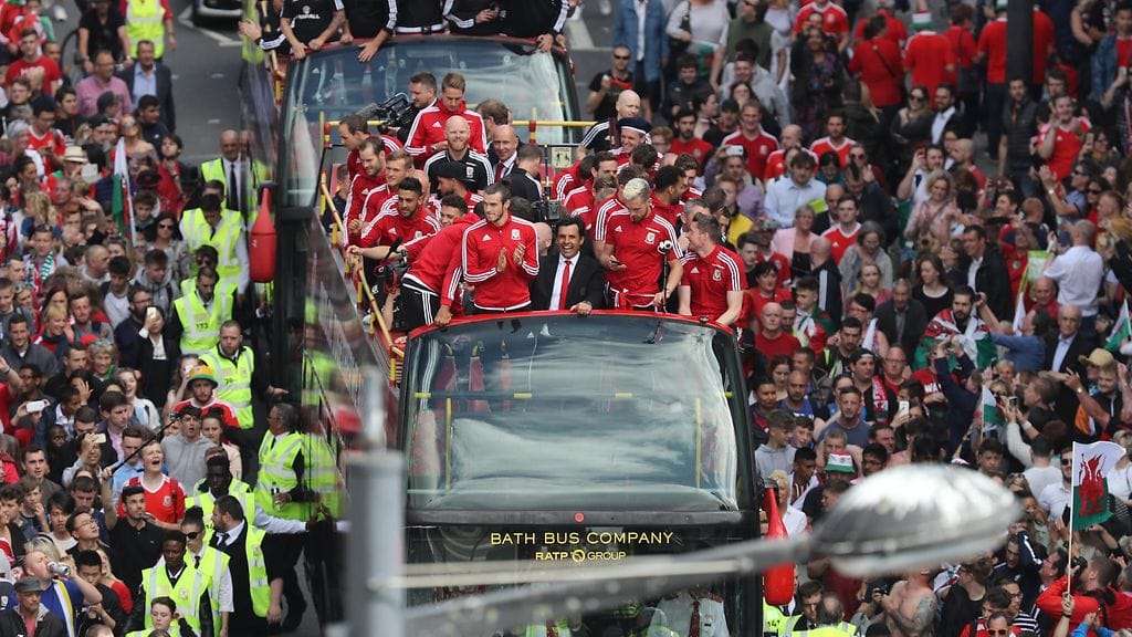 Wales hävisi kisojen välierässä Portugalille, mutta kotiin he palasivat voittajina. Pelaajat ajoivat kaupungin keskustan läpi avonaisella bussilla fanien hurratessa katujen varsilla.