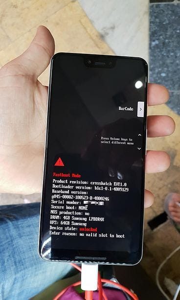 Pixel 3 XL on nähty aiemminkin live-vuotokuvissa, tuolloin tummana väriversiona. Se on saamassa näissä uusissa kuvissa selvästi näkyvän etupuolen melko laajasti kattavan näytön, jossa on kuitenkin merkittävän kokoinen lovi yläreunan keskellä sekä edelleen myös suhteellisen korkea alareunus. Pixel 3 XL on takaa lasipintainen ja sen odotetaan tukevan langatonta latausta.