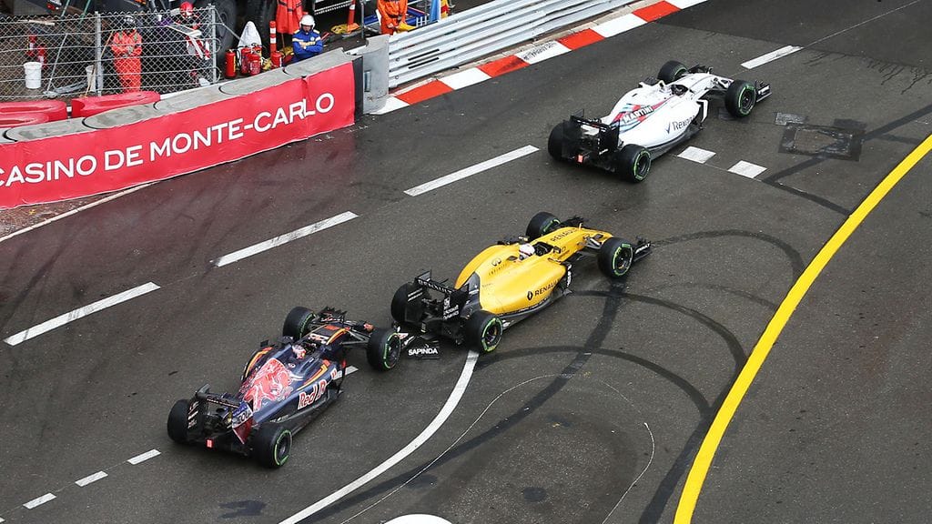 Kvjat osui samassa tilanteessa kahdesti Renault'n Kevin Magnussenin autoon ja pääsi tilanteen hyödyttämänä ohi tanskalaisesta. Lopulta hänen oma kisansa päättyi samassa mutkassa keskeytykseen.