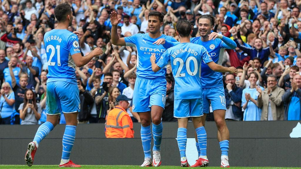 Cityn kesän tähtihankinta Jack Grealish onnistui iskemään ensimmäisen maalinsa uuden seuransa riveissä, kun hän ohjasi Jesusin keskityksen polvellaan verkkoon.