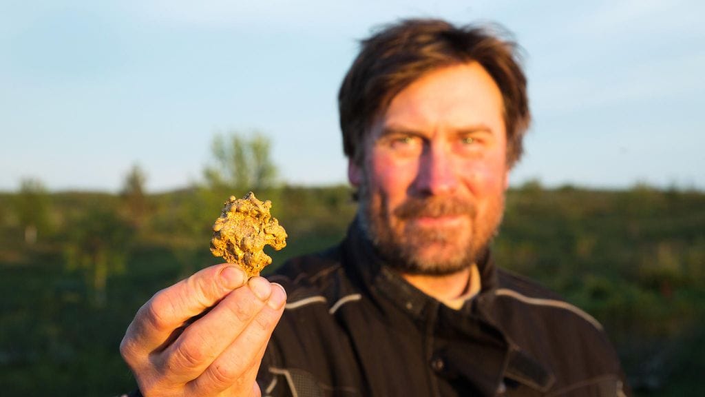– Jos haluaisin löytää vielä suuremman kultahipun, minun pitää muuttaa seulaani isommaksi. Isommat ovat menneet nyt ylitse. Tämä löytämäni hippu on suurin, mikä siihen jää.