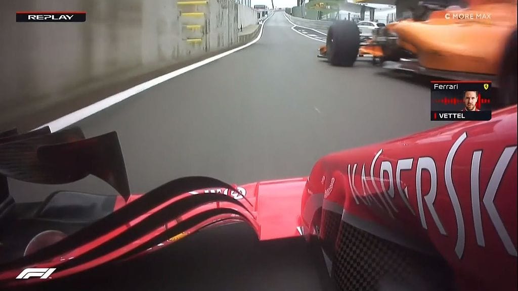 Vettel oli palaamassa varikolta radalle, kun Vandoorne hyökkäsi yllättäen omasta varikkopilttuustaan eteen. Törmäystä ei syntynyt, sillä Vettel ehti voimakkaalla jarrutuksella hidastaa vauhtiaan riittävästi.