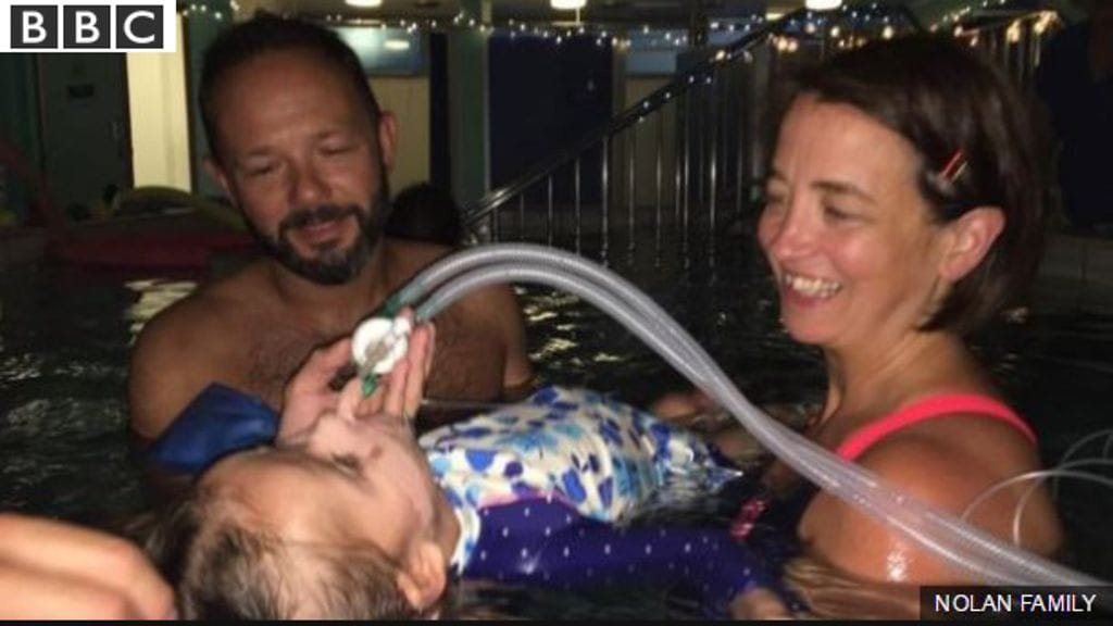 Erityiskiitosta Evelynin isä ja äiti halusivat antaa siitä, että sairaalan henkilökunta esimerkiksi muokkasi hengityskonetta sellaiseksi, että se mahdollisti uintihetken.