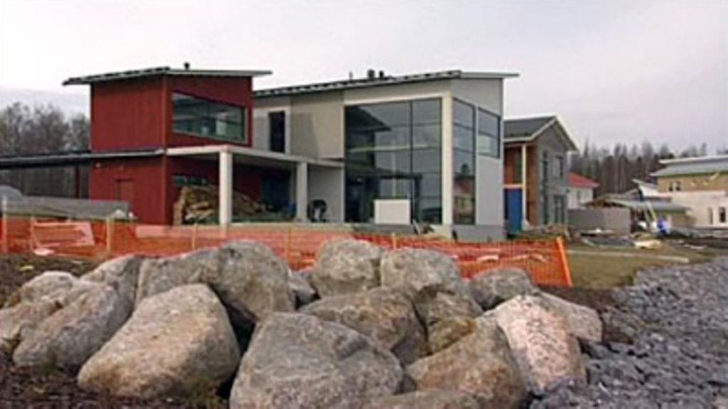 Luonnollisesti esillä ovat myös kivitalot. Ullakko osoittaa aivan alueen kärjessä sijaitsevaa betonielementtitaloa, jonka hän ennustaa muodostuvan hyvin suosituksi kohteeksi: