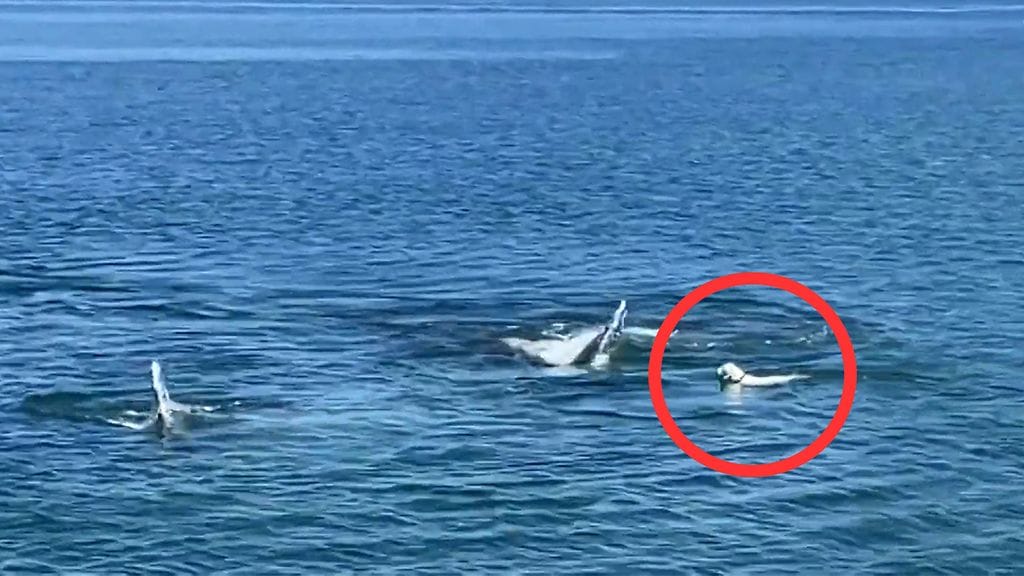 Erikoinen tilanne tallentui kameraan heinäkuussa Whibleyn saaren edustalta, joka sijaitsee hiukan pohjoiseen Seattlesta, Washingtonin osavaltiossa.