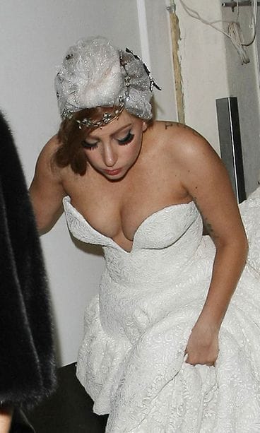 Lady Gaga hätkähdytti Lontoossa juhliessaan paljastavassa hääpuvussa.