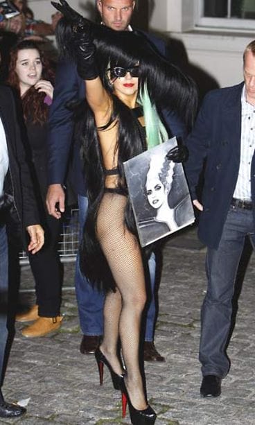 Lontoossa vieraillut suosikkiartisti oli sonnustautunut mustaan karvaiseen asuun. Karvat peittivät kuitenkin yksinomaan osin tähden vartalon etumuksen sekä takapuolen. Kyljet ja rintakehä jäivät miltei täysin paljaaksi.