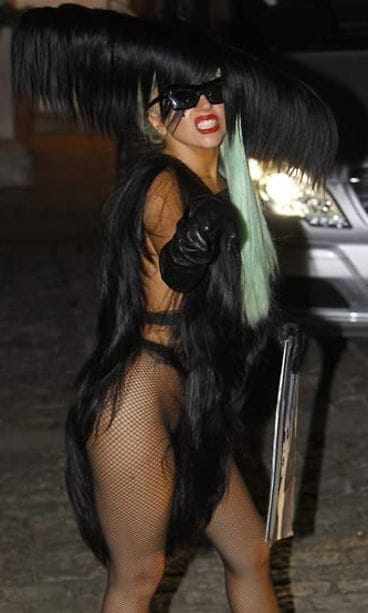 Myös Gagan hattu oli tehty karvasta. Artistin hiukset olivat mintunvihreät.