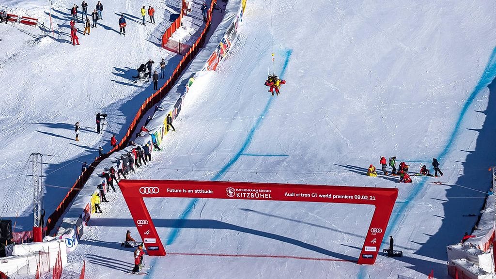Kryenbüehl kaatui hurjassa vauhdissa Kitzbühelin legendaarisen syöksyrinteen viimeisessä hypyssä ja heittelehti holtittomasti maaliviivan ylitse. Juuri ennen hyppyä laskijan nopeudeksi mitattiin 146,7 kilometriä tunnissa.