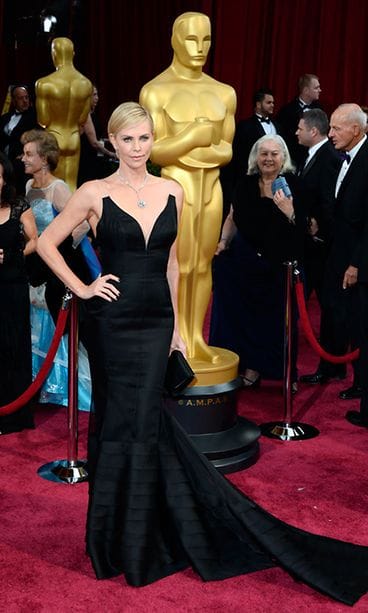 Tämä nainen rakastaa Dioria! Oscar-palkittu näyttelijä ja malli Charlize Theron, 38, verhoutui vuosi sitten viehkeään – tämän vuoden Oscar-gaalassa tähti luotti eleganttiin mustaan. Ylväästi poseeranneen Theronin yllä nähtiin toistamiseen Diorin Haute Couture -luomus, joka loi illuusion jos toisenkin – läpinäkyvät olkaimet sekä merenneitolaahus tekivät asusta kerta heitolla modernin. Kaulassa Theronilla komeili peräti 31 karaatin kaulakoru, joka on Harry Winstonin käsialaa. Charlize Theron oli jälleen yksi Oscar-gaalan upeimmista ilmestyksistä.