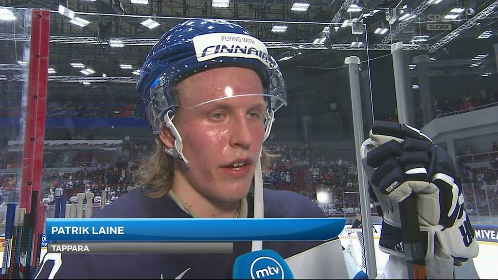 18-vuotias Laine tälläsi Leijonien MM-avauksessa Valko-Venäjän verkkoon ensin 1–0-maalin ja myöhemmin 3–1-osuman.