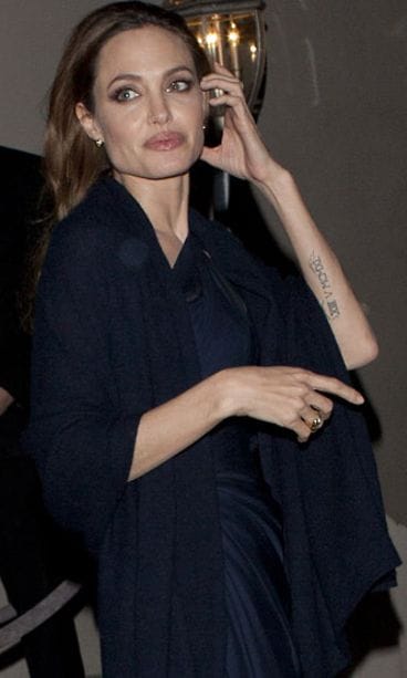 Vastikään Hollywoodista bongattu näyttelijätär oli pukeutunut tummansiniseen leninkiin. Olkapäänsä ja käsivartensa Jolie oli peittänyt huivilla. Vaikka hänellä oli yllään peittävä asu, paljastuivat huivin alta hälyttävän hoikat käsivarret.