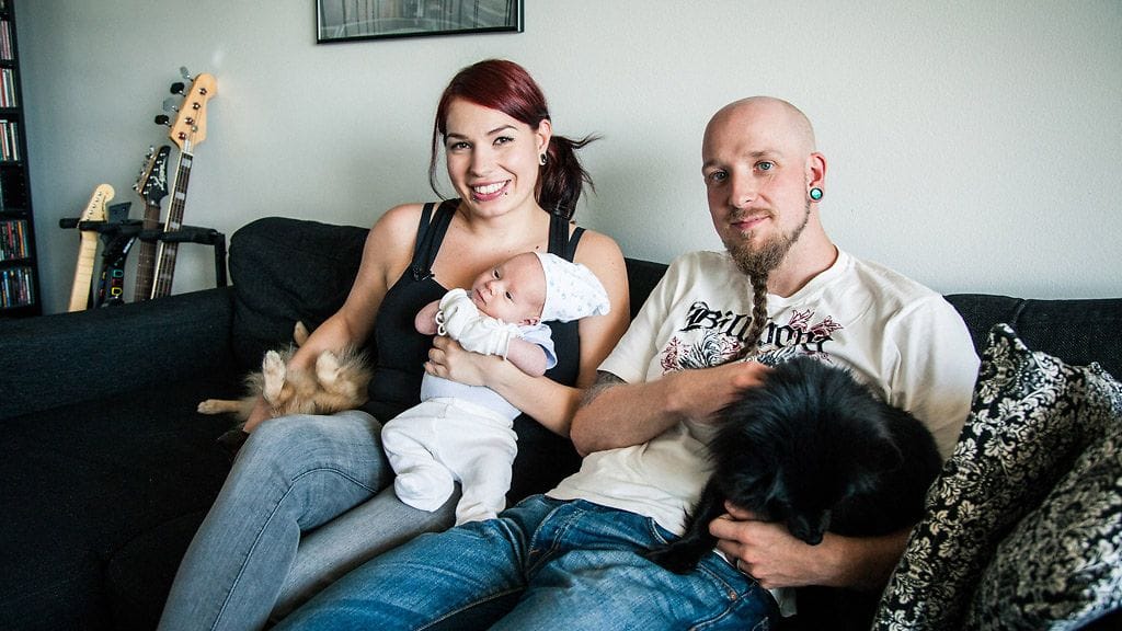 Jakson perhe: 28-vuotias Melinda Güneysel-Tuominen, 33-vuotias Teemu Tuominen ja elokuussa 2012 syntynyt esikoinen.