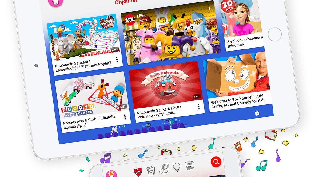 YouTube Kids helpottaa lapsille sopivien sisältöjen löytämistä ja antaa vanhemmille helppokäyttöisiä välineitä valita sisältöjä ja rajoittaa katseluaikaa.