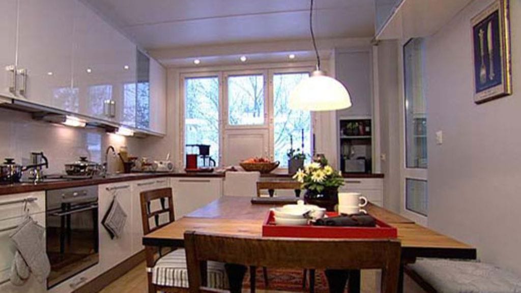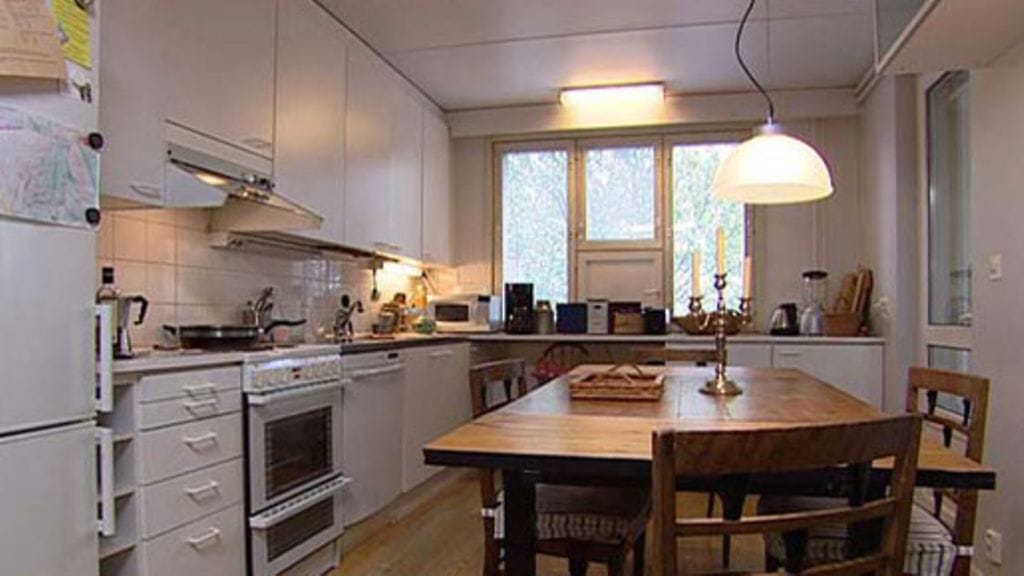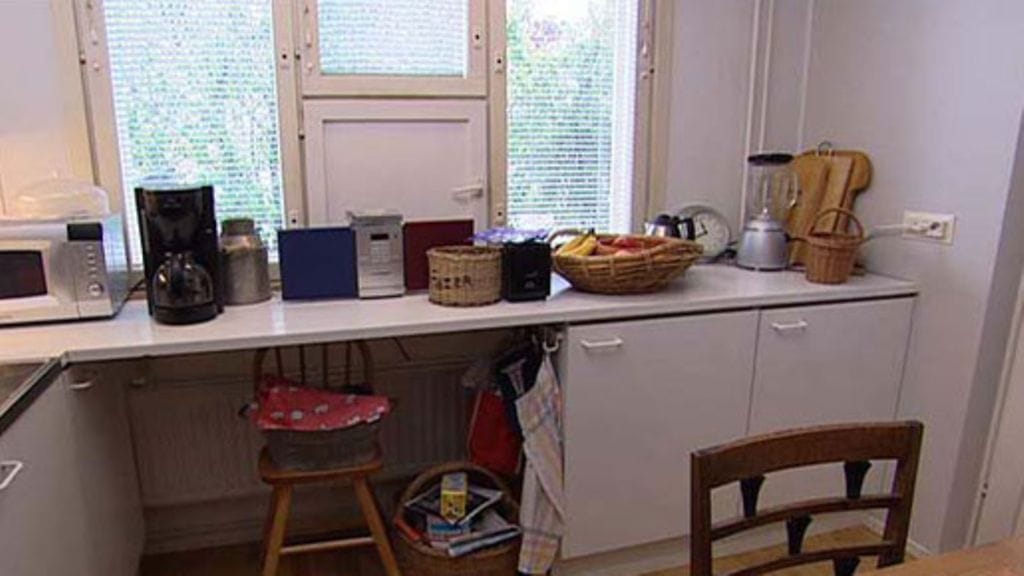 Perhe on muuttanut rivitaloasuntoon, joka on valmistunut 80- luvulla. Keittiö on alkuperäisessä kunnossa lukuun ottamatta kolmea yläkaapistoa, jotka perhe asensi, kun totesivat että keittiössä on liian vähän säilytystilaa astioille.