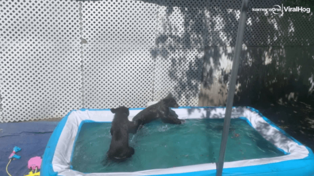 Mies meni ihmettelemään meteliä ikkunastaan ja törmäsi hämmästyttävään näkyyn. Hänen tyttärensä uima-altaaseen oli ilmestynyt kaksi karhunpentua vilvoittelemaan.
