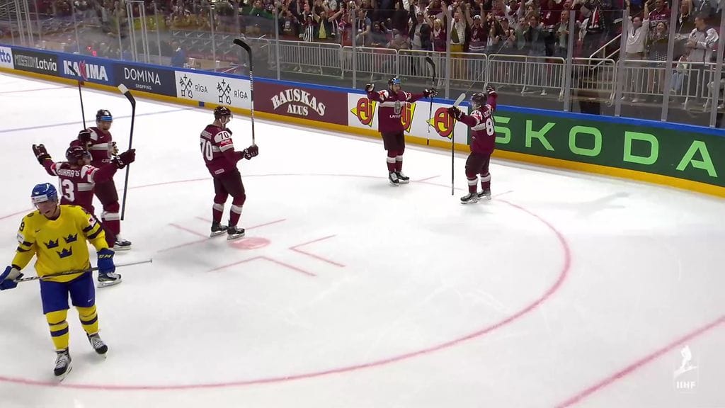 Arena Rigan intohimoinen yleisö sai aihetta riemuun Ruotsin ja Latvian MM-puolivälierän avauserässä. Ottelu oli ehtinyt vanheta 12 minuuttia ja 56 sekuntia, kun Latvian Dans Locmelis räjäytti yleisön hurjaan huutoon 0–1-maalillaan. Pääkuvan paikalla olevalta videolta voit katsoa, miltä maali näytti ja kuunnella, millaisen reaktion se aiheutti yleisössä.