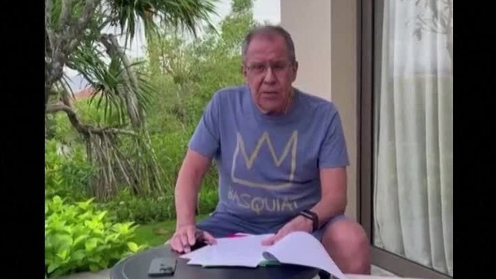 Brittilehti The Sun huomauttaa, että Lavrovin pöydällä on yli tuhannen euron arvoinen iPhone 14 -kännykkä. Ranteessaan Lavrovilla näyttäisi puolestaan olevan Apple Watch -älykello. Eikä tässä vielä kaikki, sillä Lavrov on pukeutunut amerikkalaisen artistin Jean-Michel Basquiatin logolla varustettuun t-paitaan.
