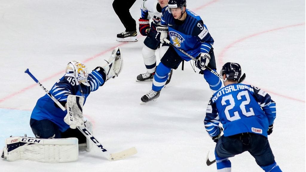 Leijonien maalivahti Jussi Olkinuoran "räpyläkäsi" on lupaavassa MM-vireessä.